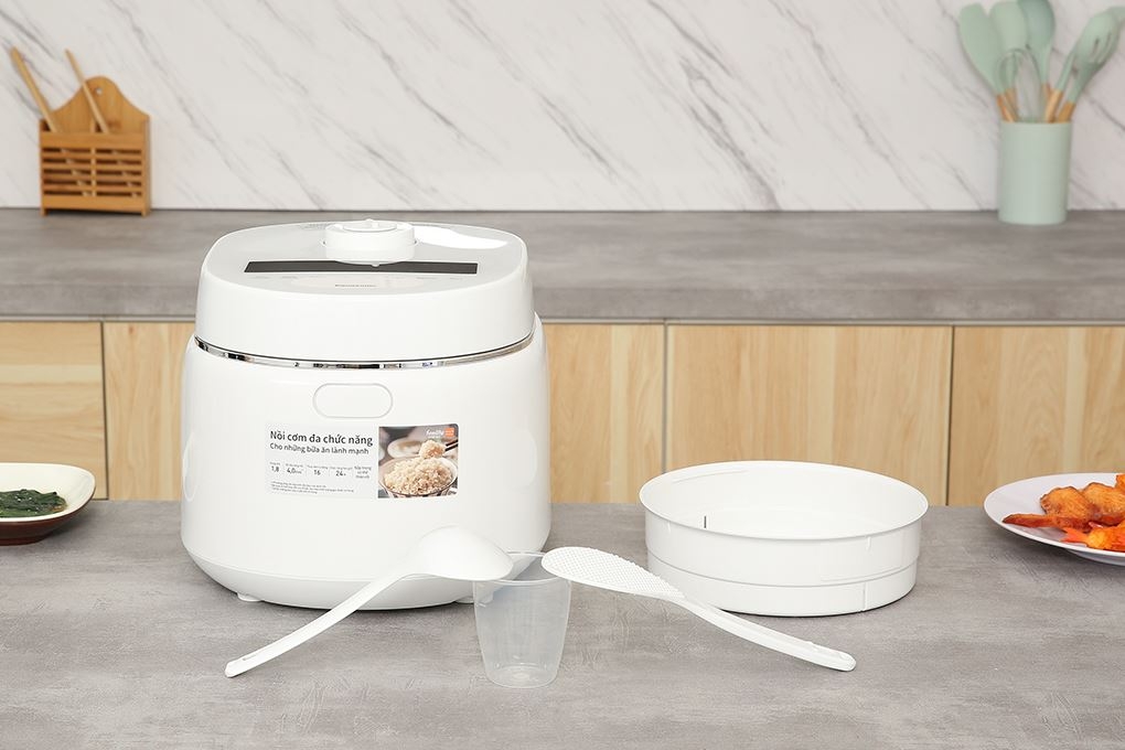 - Bộ phụ kiện đi kèm bao gồm xửng hấp, muỗng cơm, muỗng canh và cốc đong, đáp ứng đầy đủ nhu cầu sử dụng hàng ngày.![]()