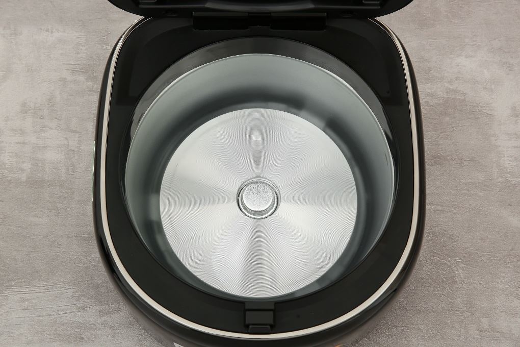 - Nồi cơm điện tử mang thiết kế thanh lịch với các đường nét bo tròn tinh tế cùng tông màu đen sang trọng, phù hợp với nhiều phong cách nội thất bếp.