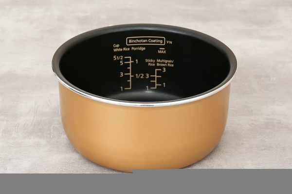 - Lòng nồi cấu tạo 5 lớp, dày 4 mm với chất liệu chính là nhôm, bên trong phủ lớp chống dính Binchotan cao cấp, truyền nhiệt tốt và dễ vệ sinh.![]()