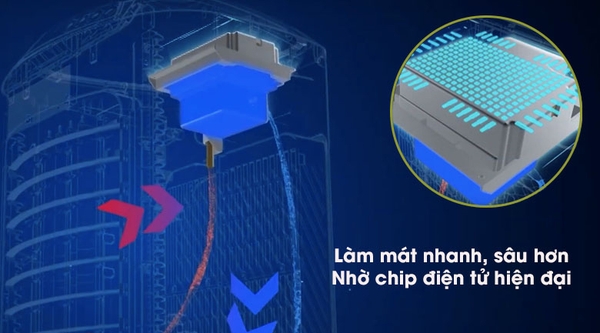 Quạt được trang bị với hệ thống làm mát bằng chip điện tử giúp hiệu quả làm mát tăng cao![]()