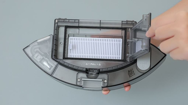 Khác với những robot hút bụi thông thường, robot hút bụi Hitachi thiết kế hộc chứa nước, hộc chứa bụi và giẻ lau chuyên dụng liền kề nhau và được đặt ngay vị trí bên dưới đầu máy, có thể tháo lắp tiện lợi. Thiết kế này giúp cho việc vệ sinh dễ dàng hơn, thao tác tháo lắp được hướng dẫn cụ thể thông qua các chú thích “Open”, “Pull” ở ngay vị trí lắp đặt.