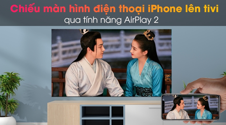 Với những tín đồ iPhone, bạn có thể sử dụng tính năng AirPlay 2 để chiếu màn hình điện thoại của mình lên tivi tiện lợi mọi lúc mình muốn.