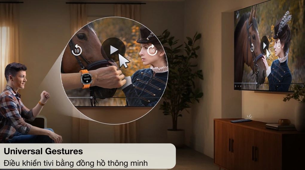 Tính năng Multi View chia đôi màn hình để hiển thị cùng lúc hai nội dung, thuận tiện khi vừa xem phim vừa theo dõi thông tin khác. Ngoài ra, Universal Gestures biến Galaxy Watch (từ thế hệ 4 trở lên) thành thiết bị điều khiển thông minh, mang lại trải nghiệm thao tác mới mẻ và hiện đại.![]()