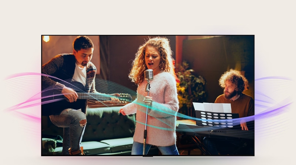- Clear Voice Pro và AI Acoustic Tuning giúp tăng độ rõ nét của giọng nói, đồng thời tinh chỉnh âm thanh theo vị trí người nghe, mang lại trải nghiệm âm thanh cân bằng ở mọi góc phòng.
