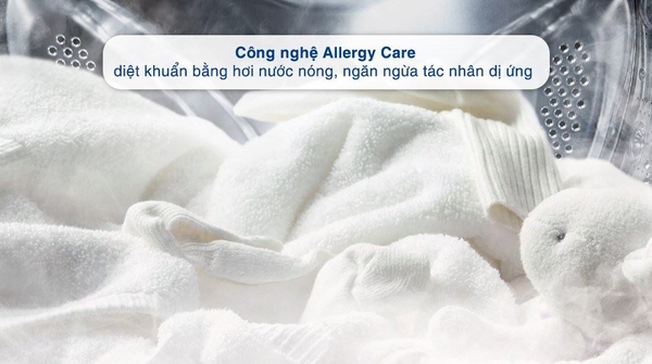 - Chăm sóc dị ứng Allergy Care: Có khả năng loại bỏ 99.9% mạt bụi bám trên quần áo với hơi nước ở nhiệt độ cao, đồng thời giúp diệt khuẩn tối ưu để bảo vệ làn da người mặc tốt hơn.