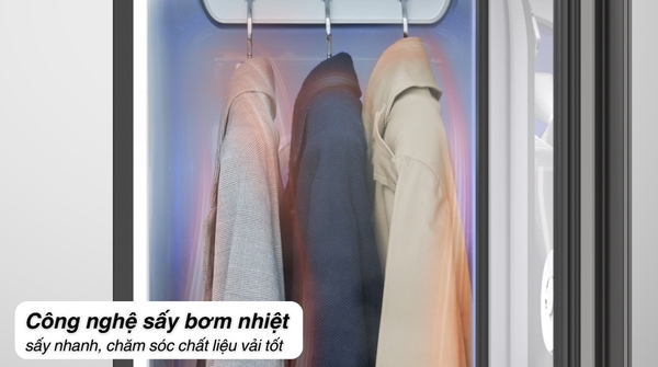 - Cơ chế thổi khí nóng đa chiều phân bổ nhiệt đồng đều trên toàn bộ bề mặt vải, kết hợp với quá trình khử khuẩn bằng hơi nước và tia UV, giúp loại bỏ vi khuẩn, mùi hôi và các tác nhân gây dị ứng, mang lại cảm giác sạch sẽ, dễ chịu cho người mặc.
