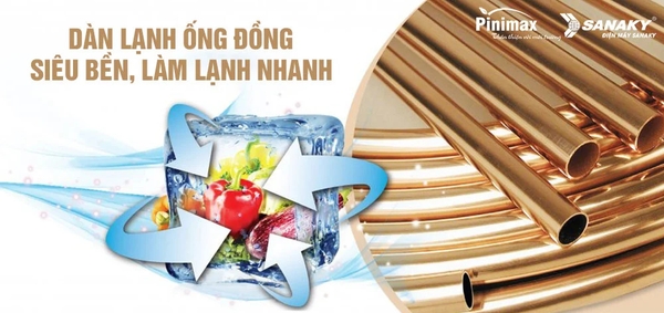 Dàn lạnh bằng đồng: Dàn đồng nguyên chất giúp cho tủ đông dẫn nhiệt nhanh hơn, vận hành êm ái và tiết kiệm điện.
