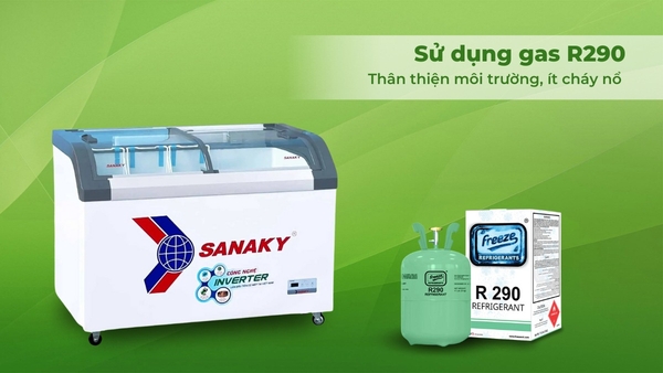 Tủ Đông Sanaky Inverter 350 Lít VH-4899K3B sử dụng gas R290 được biết đến là loại môi chất làm lạnh có hiệu suất cao. Ngoài ra, ưu điểm nổi trội của dòng gas này chính là không gây hại đến tầng Ozon và an toàn với sức khỏe người dùng. Chính vì thế chiếc tủ đông Sanaky này rất được lòng những người dùng quan tâm đến các vấn đề liên quan về môi trường.
