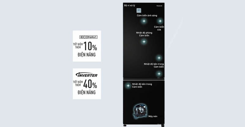 Cảm biến ECONAVI hoạt động phân với bộ vi xử lý phân tích các điều kiện sử dụng của tủ lạnh. Từ đây, dàn nóng Inverter điều chỉnh tốc độ quay của động cơ theo kết quả phân tích được của bộ vi xử lý để mang lại hiệu suất làm lạnh tốt nhất.