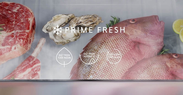 Ngăn đông mềm Prime Fresh bảo quản cá và thịt ở nhiệt độ chuẩn - 3 độ C, giúp giữ lại được những dưỡng chất và hương vị nguyên bản của thực phẩm trong 7 ngày. Thực phẩm được bảo quản trong ngăn Prime Fresh có thể nấu ngay mà không cần rã đông, tiết kiệm thời gian nấu ăn mà vẫn đảm bảo sức khỏe cho gia đình bạn.