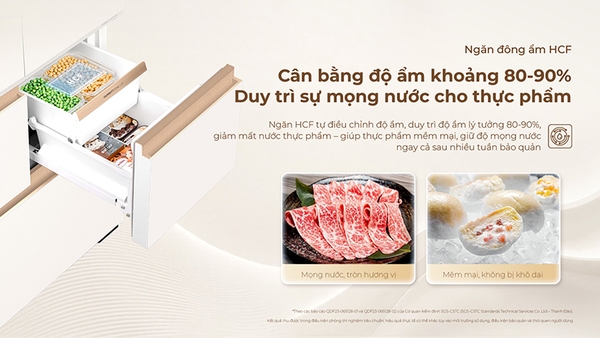 Bên cạnh ngăn rau quả giữ ẩm HCS, tủ lạnh AQUA AQR-MA585XA(MC)U1 còn có ngăn đông HCF tự điều chỉnh độ ẩm, duy trì độ ẩm lý tưởng giúp thực phẩm đông lạnh vẫn giữ được phần mềm sau nhiều tuần bảo quản.![]()