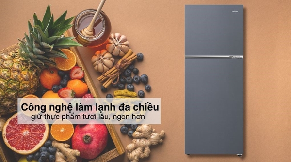 - Nhờ công nghệ làm lạnh đa chiều, chiếc tủ lạnh Aqua này có thể giữ cho mọi loại thực phẩm và đồ uống luôn được tươi ngon, mát lạnh. Luồng khí lạnh sẽ được phân phối đều khắp mọi khu vực trong tủ, đảm bảo mọi thực phẩm đều được làm lạnh tốt, không bị bỏ sót bất kỳ góc nào.