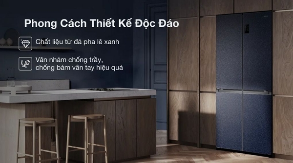 - Tủ lạnh Aqua với thiết kế Multi Door - 4 cánh hiện đại cung cấp không gian lưu trữ rộng rãi, giúp người dùng dễ dàng phân bổ và sắp xếp thực phẩm. Với thiết kế sang trọng, đây là điểm nhấn hoàn hảo cho không gian phòng bếp của gia đình.