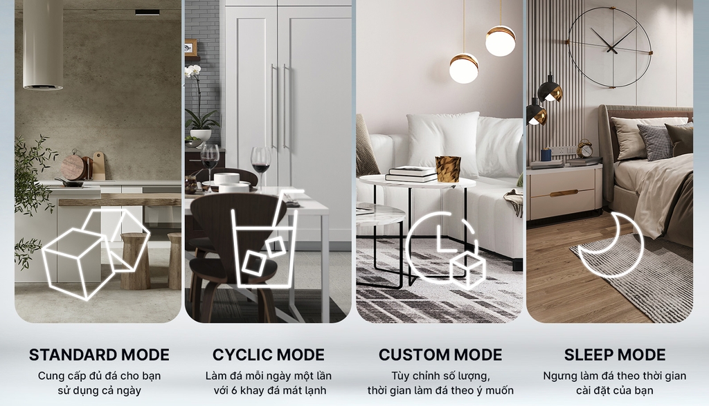 Tủ lạnh Aqua AQR-TA518FA(GL)U1 tích hợp hệ thống làm đá tự động Smart Ice với 4 chế độ linh hoạt, có thể điều khiển dễ dàng qua điện thoại. Hộc nước thông minh sẽ thông báo khi sắp hết nước, đảm bảo quá trình làm đá không bị gián đoạn. Ngoài ra, chức năng dừng làm đá ban đêm giúp tiết kiệm điện và không gây ồn, đảm bảo giấc ngủ ngon cho gia đình.![]()