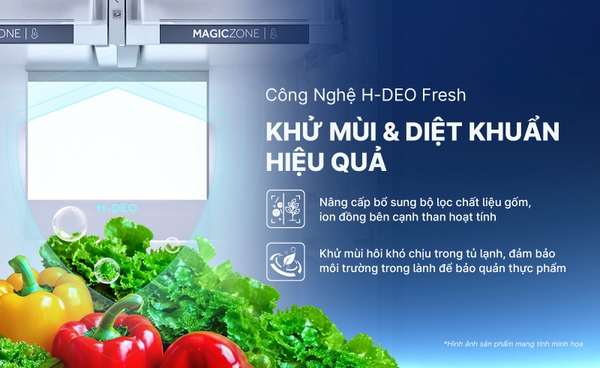 H-DEO Fresh ứng dụng ion bạc (Ag+) giúp loại bỏ vi khuẩn, ngăn ngừa sự phát triển của nấm mốc và khử mùi khó chịu, đảm bảo môi trường bảo quản an toàn, giữ thực phẩm luôn tươi ngon. Công nghệ này không chỉ giúp bảo vệ sức khỏe mà còn hạn chế tình trạng thực phẩm bị lẫn mùi.![]()