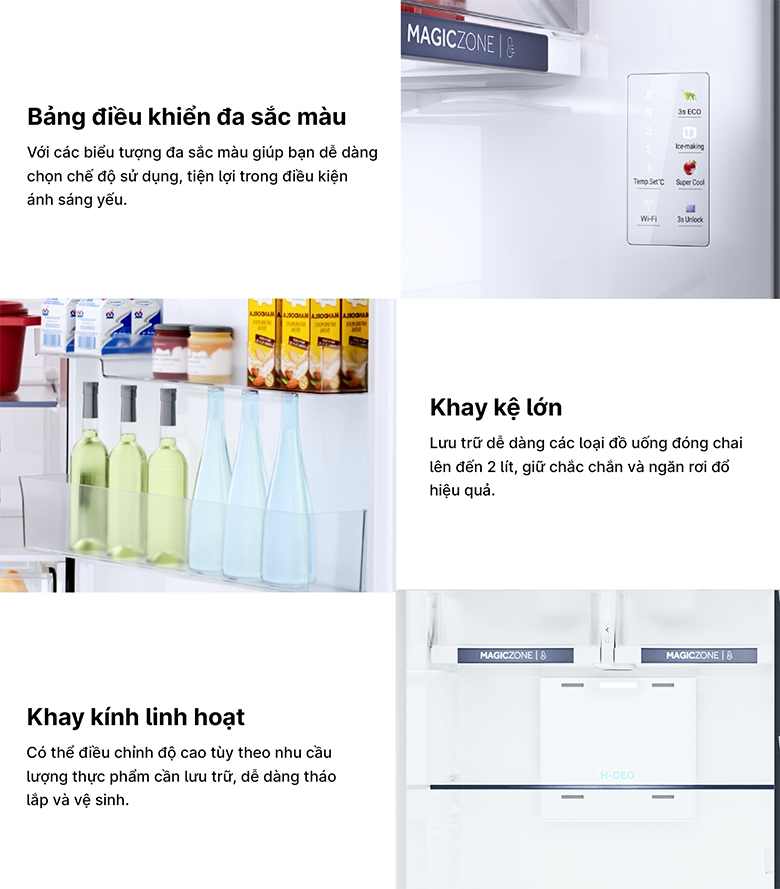 Tổng dung tích 455 lít phù hợp cho gia đình từ 3-5 thành viên. Ngăn đông dung tích 99 lít được thiết kế thông minh với bộ phận làm đá, kệ ngăn đông và các khay đựng tại cửa tủ, tối ưu hóa không gian lưu trữ thực phẩm đông lạnh. Ngăn lạnh rộng rãi 356 lít gồm 2 ngăn Magic Zone tiện lợi, khay kệ ngăn lạnh lớn cùng các khay đựng tại cửa tủ, giúp sắp xếp thực phẩm khoa học và dễ dàng tìm kiếm. ![]()