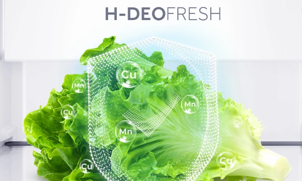 Công nghệ H-DEO Fresh tích hợp trong tủ lạnh Aqua AQR-M570XA(FS) hỗ trợ khử mùi hiệu quả, giảm thiểu vi khuẩn phát sinh, giữ cho không gian bảo quản thực phẩm luôn sạch sẽ và dễ chịu.![]()
