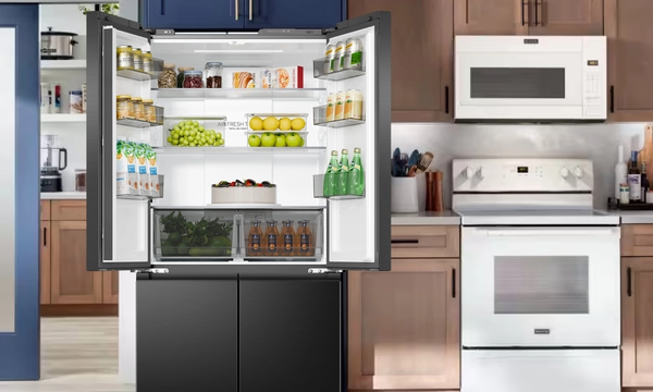 Thiết kế tủ lạnh Multi Door 4 cửa Aqua giúp phân chia không gian bảo quản khoa học, hạn chế thất thoát hơi lạnh khi mở tủ, đồng thời tăng tính thẩm mỹ cho tổng thể không gian bếp hiện đại. Dung tích 570 lít của tủ lạnh Aqua AQR-M570XA(FS) đáp ứng tốt nhu cầu lưu trữ thực phẩm phong phú cho gia đình đông người, hỗ trợ bảo quản số lượng lớn thực phẩm tươi sống, đồ uống và nguyên liệu chế biến.![]()