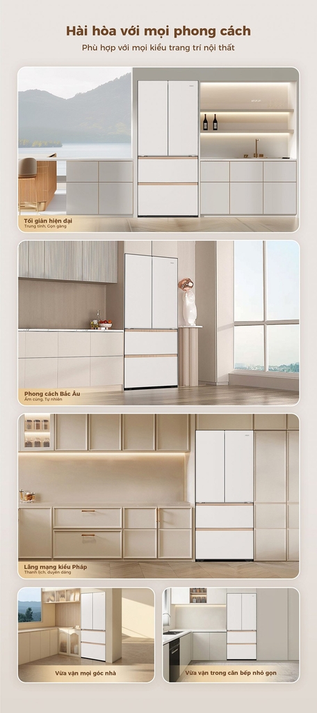 Tủ lạnh Aqua Inverter 515 lít Multi Door AQR-MA590XA(MC)U1 sở hữu thiết kế ấn tượng, chất liệu cao cấp, bề mặt liền mạch cùng những đường nét được trau chuốt tạo nên diện mạo tối giản, hiện đại nhưng đầy cá tính, nâng tầm mọi không gian nội thất. Gam màu kem trắng phối cùng ánh sáng dịu nhẹ mang tới cảm giác tươi mới, ấm cúng.![]()
