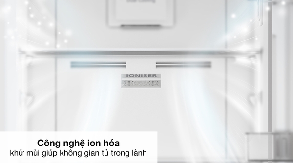 - Tủ trang bị công nghệ ion hóa với khả năng sản sinh các ion âm, tủ lạnh loại bỏ hiệu quả vi khuẩn và các phân tử gây mùi, từ đó không gian bên trong tủ luôn tươi mát và sạch sẽ, bảo quản thực phẩm tốt hơn.![]()
