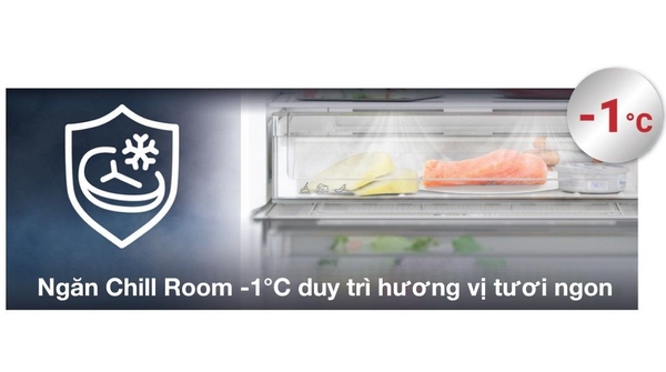 - Ngăn Chill Room -1°C bảo quản các loại thực phẩm như thịt, cá một cách hiệu quả, hạn chế sự chảy nước gây mất chất dinh dưỡng.![]()