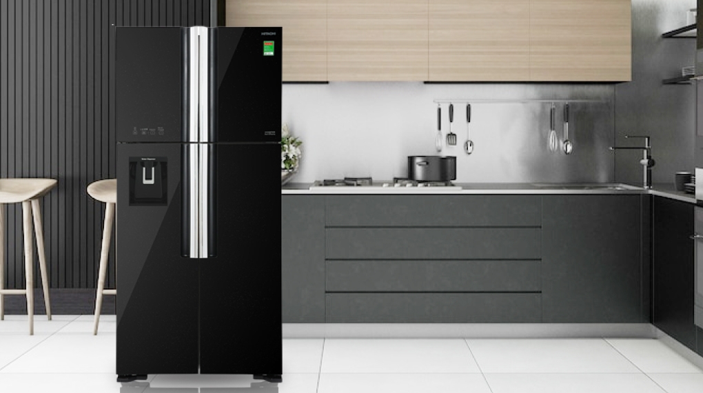 - Hitachi Inverter 540 lít R-FW690PGV7 GBK là tủ lạnh Multi Door 4 cánh sang trọng trong gam màu đen hiện đại, cửa tủ mặt kính nền đen sáng bóng, đẹp mắt, dễ lau chùi, giữ cho tủ luôn đẹp như mới. Thiết kế phong cách Pháp, từng cửa tủ mở riêng biệt tận dụng tốt không gian lưu trữ và hạn chế khí lạnh thoát ra ngoài.