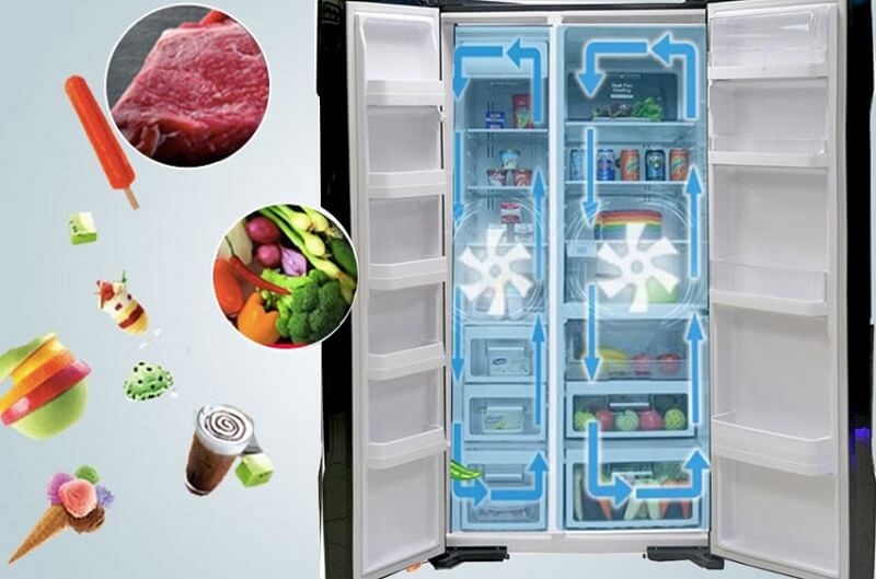 Bên cạnh đó, tủ còn được trang bị hệ thống làm lạnh kép với 2 quạt gió riêng cho từng ngăn, không chỉ giúp làm lạnh sâu nhanh chóng mà còn phân bổ khí lạnh khắp mọi ngóc ngách trong mỗi ngăn tủ, đảm bảo thực phẩm được làm lạnh đều ở bất kỳ vị trí nào.
