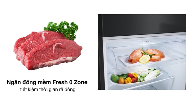 - Ngăn Fresh 0 Zone giúp các loại thực phẩm tươi sống được bảo quản ở nhiệt độ 0°C trong 24 giờ. Thiết kế hộp kín của ngăn chứa này còn giúp tránh lẫn mùi thực phẩm.![]()