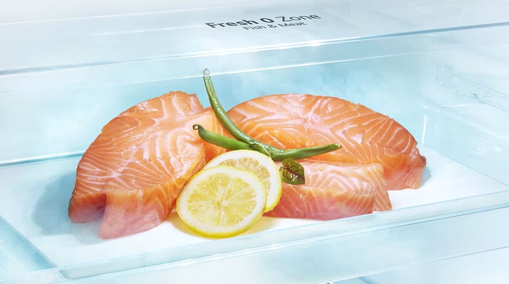 - Ngăn chứa 0 độ Fresh Zone có khả năng bảo quản hiệu quả những loại thực phẩm tươi sống như cá, thịt mà không cần rã đông ở ngăn khác.![]()