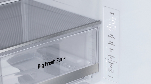 - Ngăn giữ ẩm rau củ Big Fresh Zone được thiết kế theo dạng hộp kín, cung cấp khả năng giữ ẩm giúp bảo quản các loại rau củ luôn tươi ngon và không bị ôi thiu.