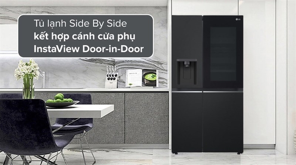 - Điểm khác biệt của chiếc tủ lạnh này là thiết kế dạng Side By Side và được kết hợp thêm cánh cửa phụ InstaView giúp tủ trông sang trọng hơn. Cánh cửa phụ này giúp bạn có thể lấy thực phẩm thông qua phần cánh cửa phụ mà không cần mở toàn bộ cánh, ngoài ra với thao tác gõ nhẹ 2 cái lên cánh tủ đèn sẽ tự động bật sáng giúp bạn dễ dàng thấy được lượng thực phẩm có bên trong.