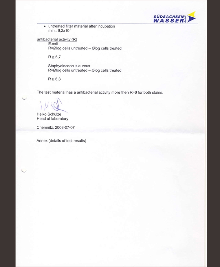 Giấy chứng nhận công nghệ Blue Ag+ có khả năng diệt khuẩn E.coli và khuẩn tụ cầu vàng