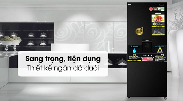 Chiếc tủ lạnh Panasonic sở hữu dung tích ngăn đá 112 lít và ngăn lạnh 265 lít, đáp ứng cho nhu cầu lưu trữ thực phẩm của những hộ gia đình có khoảng từ 3 - 4 thành viên.