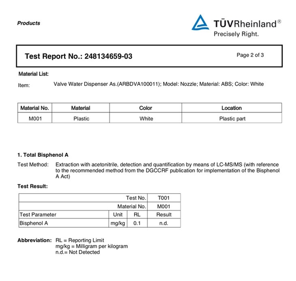 *Kết quả kiểm tra cho thấy hộp chứa nước không chứa chất BPA, được kiểm chứng bởi Tổ chức Quốc tế TÜV Rheinland có trụ sở tại Đức.![]()