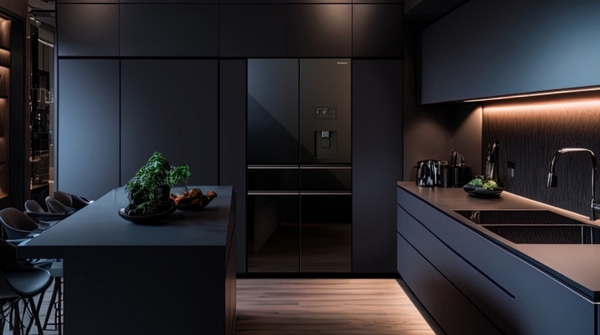 - Bề mặt cửa tủ lạnh được làm bằng kính đen, tạo cảm giác sang trọng. Kính cũng có khả năng chống bám vân tay, giúp bảo quản vẻ đẹp của sản phẩm.