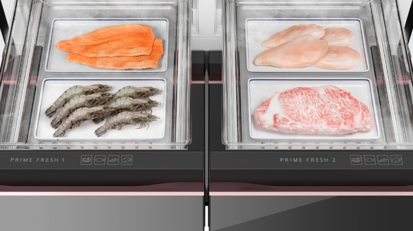 - Ngăn cấp đông siêu tốc Prime Freeze cấp đông nhanh gấp 5 lần ở 3 chế độ: Làm nguội nhanh (làm nguội thực phẩm nóng như cháo, súp trong 3 - 5 phút), làm mát nhanh (tẩm ướp gia vị nhanh, làm mát đồ tráng miệng pudding, chè trong 15 phút), cấp đông siêu tốc (làm đông thực phẩm trong thời gian ngắn từ 45 - 60 phút).![]()