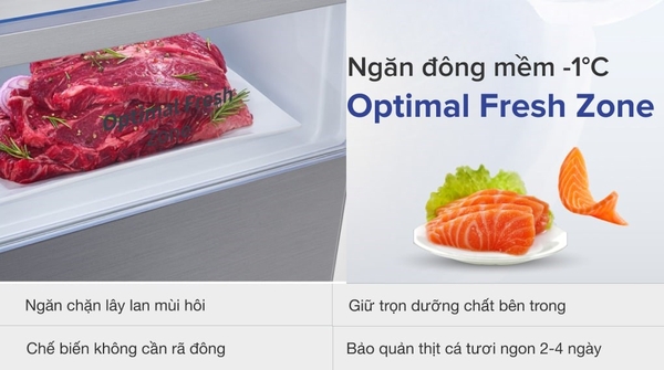 Bảo quản thực phẩm tươi sống, sử dụng trong ngày không cần rã đông với ngăn đông mềm -1 độ C Optimal Fresh Zone
