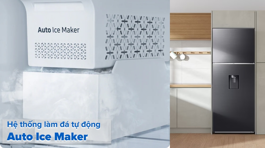 - Hệ thống làm đá tự động Auto Ice Maker: thiết kế tạo ra đá viên tự động, cung cấp đủ lượng đá sạch cho bạn sử dụng hằng ngày để làm các loại thức uống, chế biến món ăn dễ dàng.