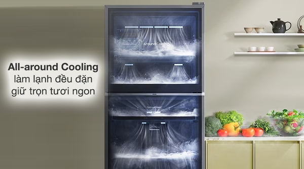 - Công nghệ làm lạnh vòm All-around Cooling: thông qua hệ thống lỗ khí được bố trí hợp lý lan tỏa, luân chuyển hơi lạnh đều đặn giữ độ ẩm, nhiệt độ tủ lạnh ổn định, thực phẩm lưu giữ được độ tươi ngon trong thời gian dài. ![]()