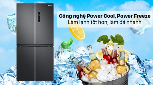 Tủ lạnh Samsung Inverter có chế độ Power Cool sẽ thổi các luồng khí lạnh mạnh mẽ để làm lạnh nhanh thực phẩm và đồ uống có trong tủ. Chế độ Power Freeze giúp việc cấp đông thực phẩm và tạo ra các viên đá trở nên nhanh chóng do luồng khí lạnh được thổi trực tiếp vào ngăn đông.![]()