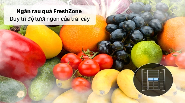 Rau củ được duy trì độ tươi ngon và bảo toàn dưỡng chất nhờ để trong ngăn rau củ FreshZone với thiết kế có nắp đậy kín và tự động kiểm soát độ ẩm phù hợp với thực phẩm. Với thiết kế 2 ngăn, người dùng thoải mái lưu trữ lượng thực phẩm mình muốn.![]()