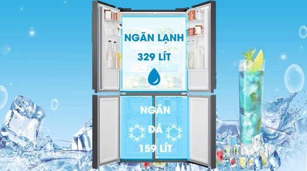Tủ lạnh với dung tích 488 lít có ngăn đá 159 lít và ngăn lạnh 329 lít nên bạn để được nhiều loại thực phẩm cũng như phù hợp cho nhiều gia đình có từ 4 – 5 thành viên.![]()