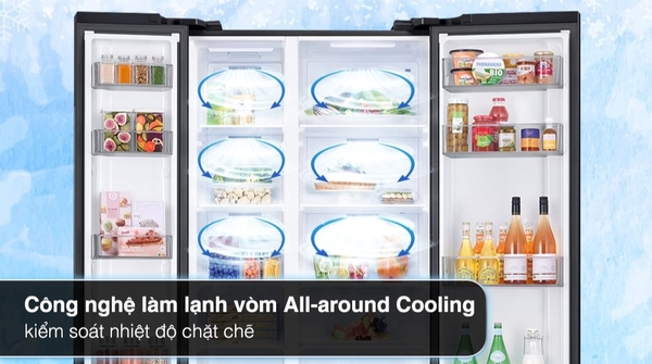 - Với công nghệ làm lạnh vòm All-around Cooling thực phẩm sẽ được bảo quản và làm lạnh toàn diện nhờ các hơi lạnh lan tỏa đều theo hình vòng cung, giúp kiểm soát chặt chẽ sự thay đổi nhiệt độ và luân chuyển hơi lạnh bao phủ toàn bộ thực phẩm thông qua hệ thống lỗ khí bố trí thông minh. ![]()