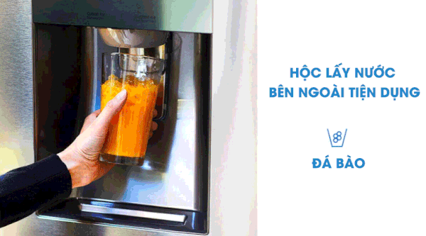 Hộc lấy nước bên ngoài tiện dụng giúp tránh mất nhiệt tủ lạnh