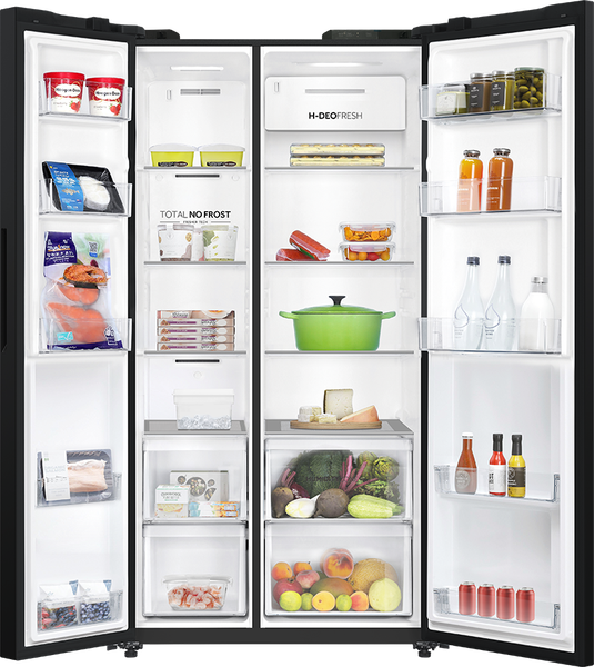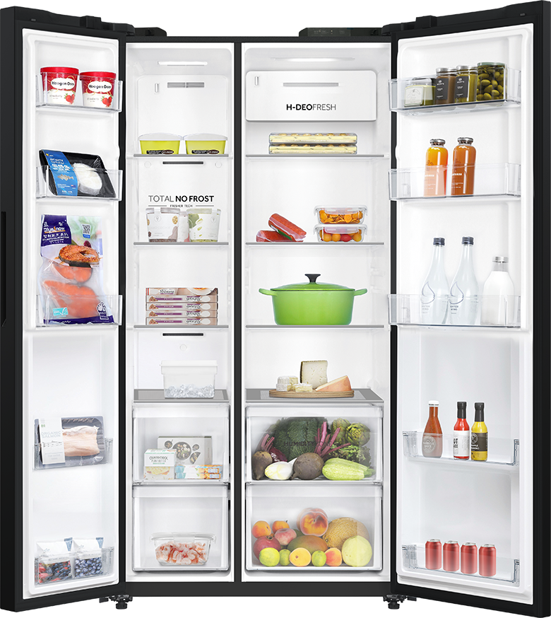 Tủ lạnh Aqua Inverter AQR-S682XA(FS) thuộc dòng tủ lạnh Side by Side với 2 cánh mở 2 bên cực kì tiện lợi, hai ngăn đông và ngăn mát được bố trí song song theo chiều dọc, bạn sẽ dễ dàng sắp xếp thực phẩm yêu thích trong tầm mắt, thuận tiện cho việc lấy ra mà không cần cúi xuống tìm kiếm. Cửa tủ thiết kế góc mở 90 độ phù hợp với cả những không gian bếp nhỏ hẹp.