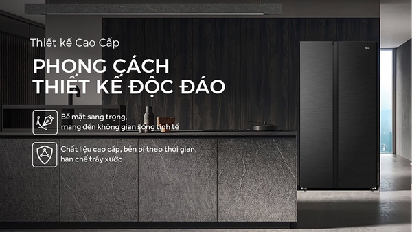 Tủ lạnh SBS Aqua Inverter 646 lít AQR-S682XA(FS) mang đến sự sang trọng, thời thượng cho không gian sống của bạn với thiết kế hiện đại, tối giản. Tủ có tông màu đen mạnh mẽ, hài hòa với mọi phong cách nội thất. Chất liệu cửa tủ thép cao cấp bền bỉ, không chỉ đảm bảo bề mặt luôn mới mẻ theo thời gian mà còn làm tôn lên vẻ đẹp của sản phẩm.![]()