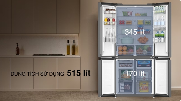 - Dung tích sử dụng 515 lít - phù hợp với hộ gia đình từ 4 đến 5 người.