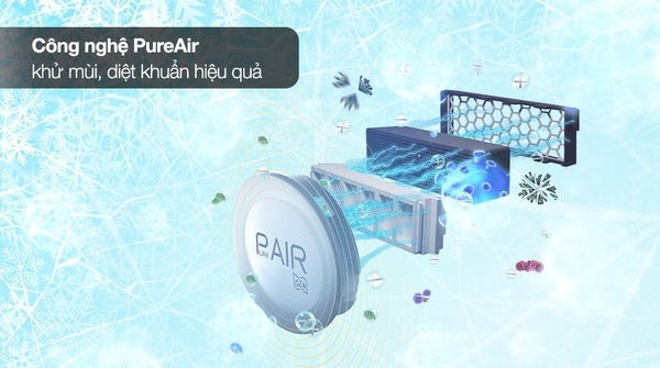 - Tủ được trang bị công nghệ PureAir có khả năng khử mùi và diệt khuẩn mạnh mẽ, giữ không khí trong tủ luôn sạch sẽ.