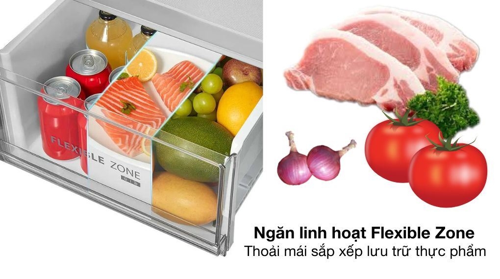 - Tủ lạnh sở hữu ngăn điều chỉnh Flexible Zone có khả năng chuyển đổi linh hoạt 3 chế độ, giúp người dùng có thể bảo quản các loại thực phẩm tùy theo nhu cầu gia đình.![]()