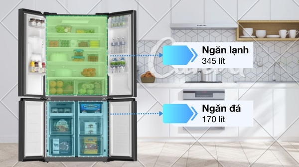 - Dung tích sử dụng lên đến 515 lít, đáp ứng nhu cầu bảo quản thực phẩm cho gia đình từ 4 - 5 người.![]()